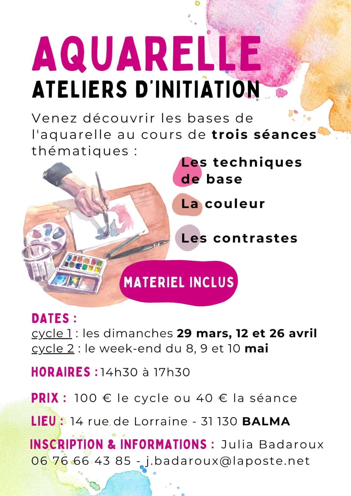 Ateliers d’initiation à l’aquarelle avec Julia Badaroux